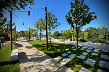 Création d'une sente paysagère aux abords des arrêts de tram avec ombrieres .