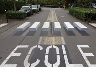 Il pourrait s’agir de passages piétons 3D comme sur la photo (les 2 placés rue de Lestaing proches des portails d’entrée) ou de marquages ludiques et colorés.