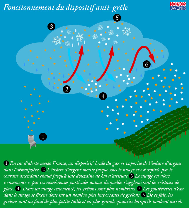 J'ai découvert récemment qu'un grand nombre d'agriculteurs du sud ouest sont équipés de Générateur à Iodure d'argent qui permettraient de réduire considérablement la taille des grêlons et de limiter la casse.