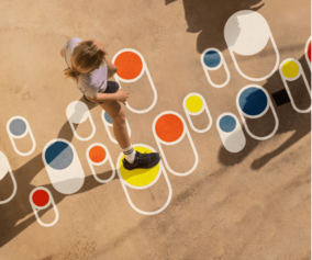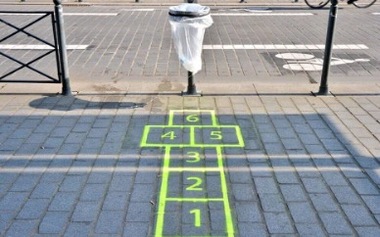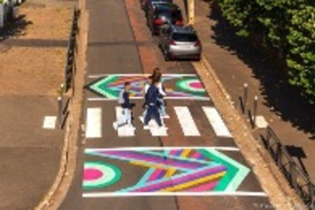 Un marquage au sol, original et ludique, à divers endroits (parvis, passages piétons...) pourrait :