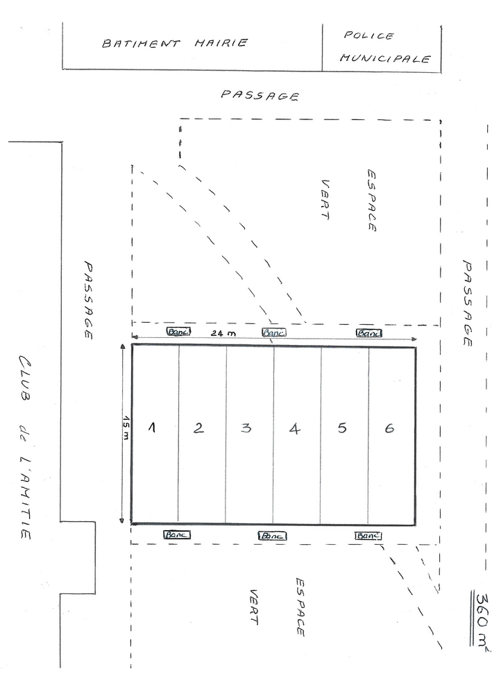 Le terrain sera implanté devant le club de l'amitié (dont les adhérents jouent actuellement sur le passage communal) cet emplacement sécurisé , calme et à proximité d'espaces publics